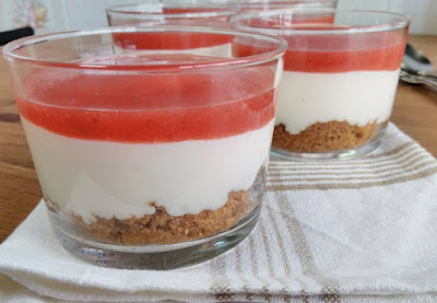 - Colocar em taças individuais, em primeiro lugar uma colher de sopa bem cheia da bolacha triturada e de seguida colocar o creme, deixar solidificar um pouco no frigorífico, adicionar a cobertura de morangos e levar novamente ao frigorífico até a hora de servir.