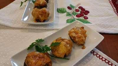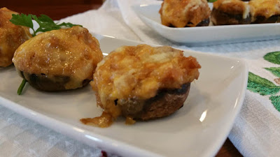 Juntar todos os temperos numa taça, mexendo ligeiramente e barrar o interior dos cogumelos.