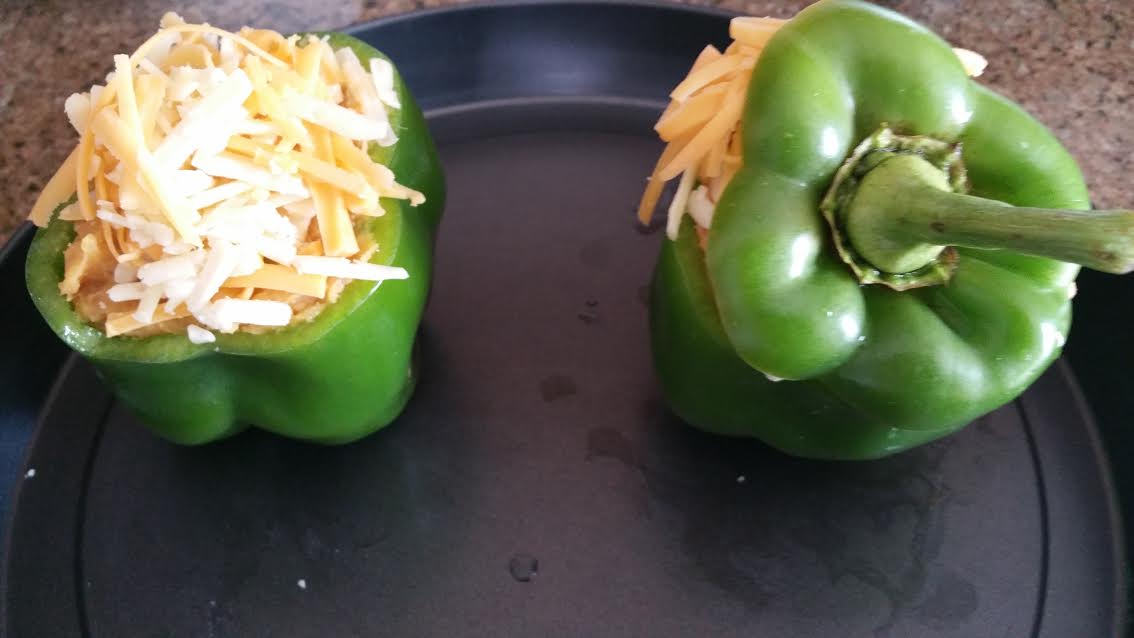 - Os pimentos que usámos eram caseiros e bastante grandes, por isso precisaram de mais 5 minutos de forno.