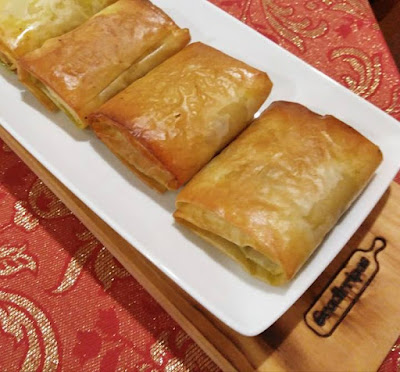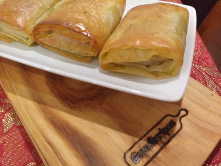 Colocar uma folha, pincelar com a manteiga e colocar outra folha por cima, rechear com os legumes e fazer as pequenas almofadas, repetir a operação até acabar o recheio e a massa.