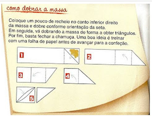 Madalena siga o exemplo que está em cima e o recheio não pode ser muito húmido nem estar quente, porque amolece a massa e depois não se dobra bem.