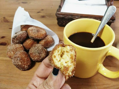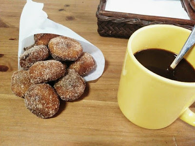 Os melhores lanches são os que são feitos pela mãe, e não há melhor do que uns bolinhos fritos com sabor a laranja e uma bela caneca de café.