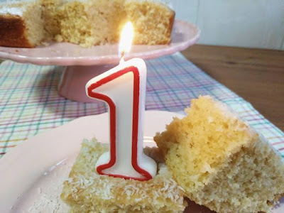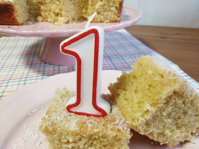Hoje partilhamos a receita do bolo que fizemos ontem, para comemorar o nosso primeiro aniversário: um delicioso bolo de coco.