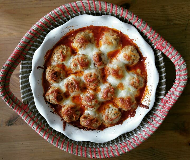 - Numa travessa que possa ir ao forno colocar em primeiro lugar o molho de tomate (a quantidade que preferir), logo de seguida as almôndegas e por último a mozarella cortada em pedaços.