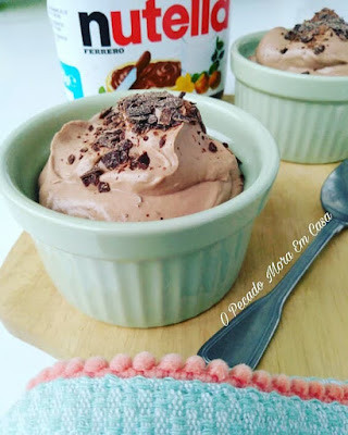 - Colocar numa tigela a Nutella e adicionar aos poucos as natas batidas e envolver delicadamente.